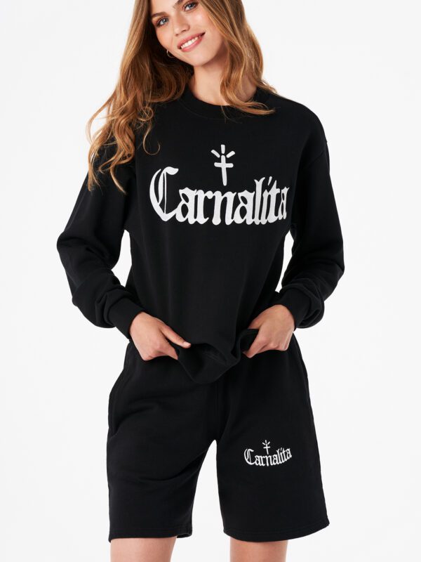Relaxed fit organic cotton fleece sweatshirt in black with logo and Lettering Embroided on chest.